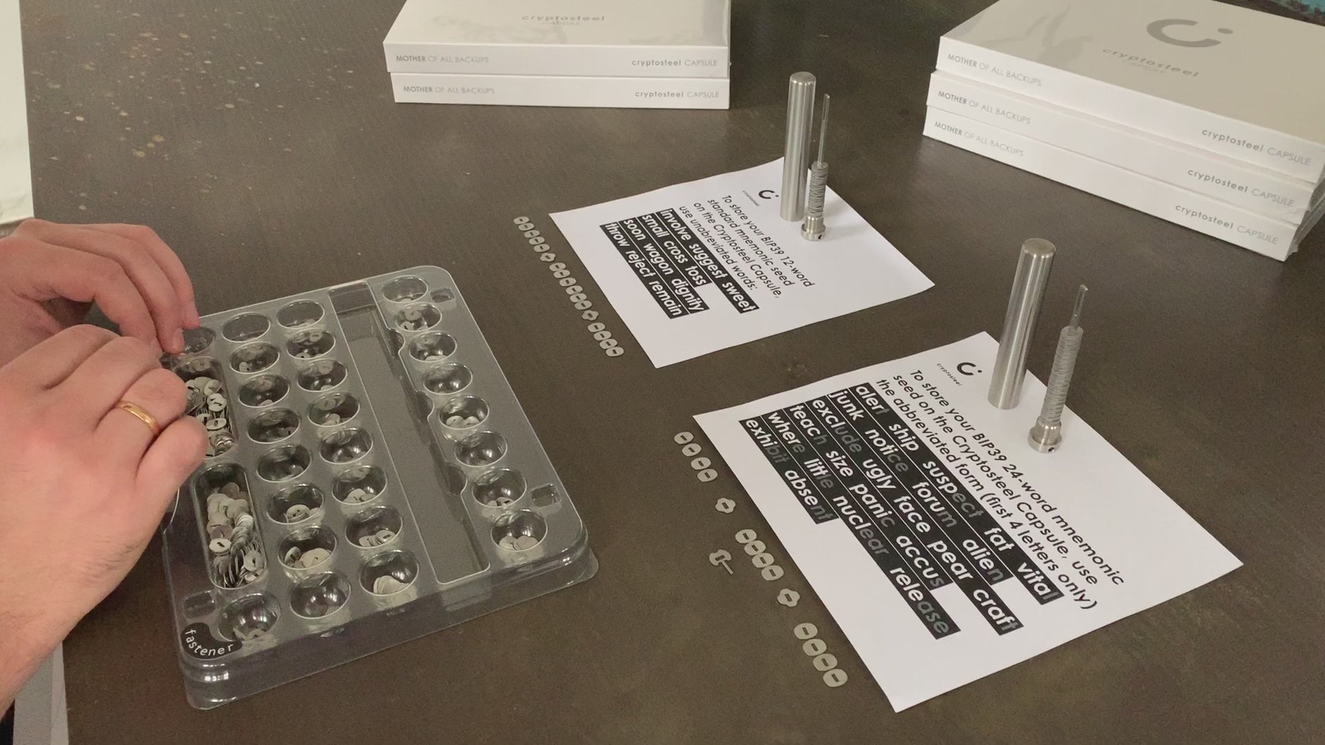 Cryptosteel Capsule is a metal backup designed to permanently secure your recovery seed, passphrase, and other critical secrets offline. Made from high-grade stainless steel, it protects your recovery information from fire, water, corrosion, impact, and other real-world disasters that destroy paper or digital backups. By combining the simplicity of manual assembly with extreme physical durability, Cryptosteel Capsule ensures your recovery seed remains readable and intact for life. It is compatible with modern key-generation and secret-sharing standards and provides true offline protection—immune to hacking, malware, and electronic failure.